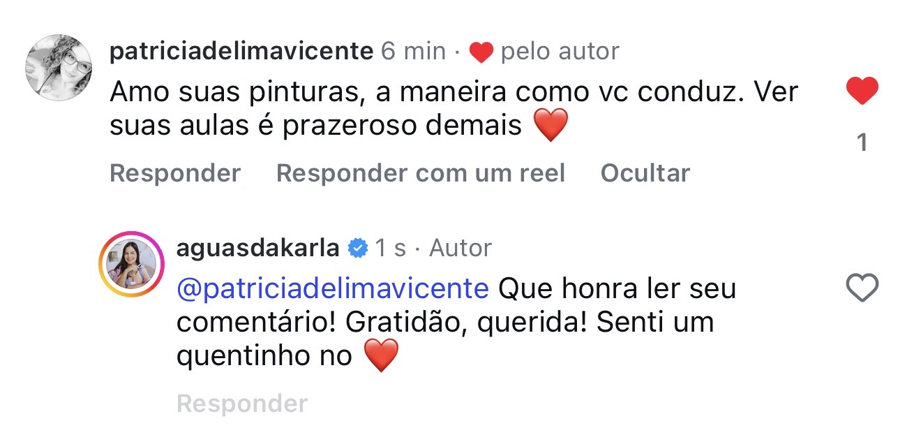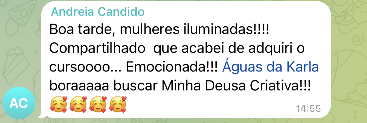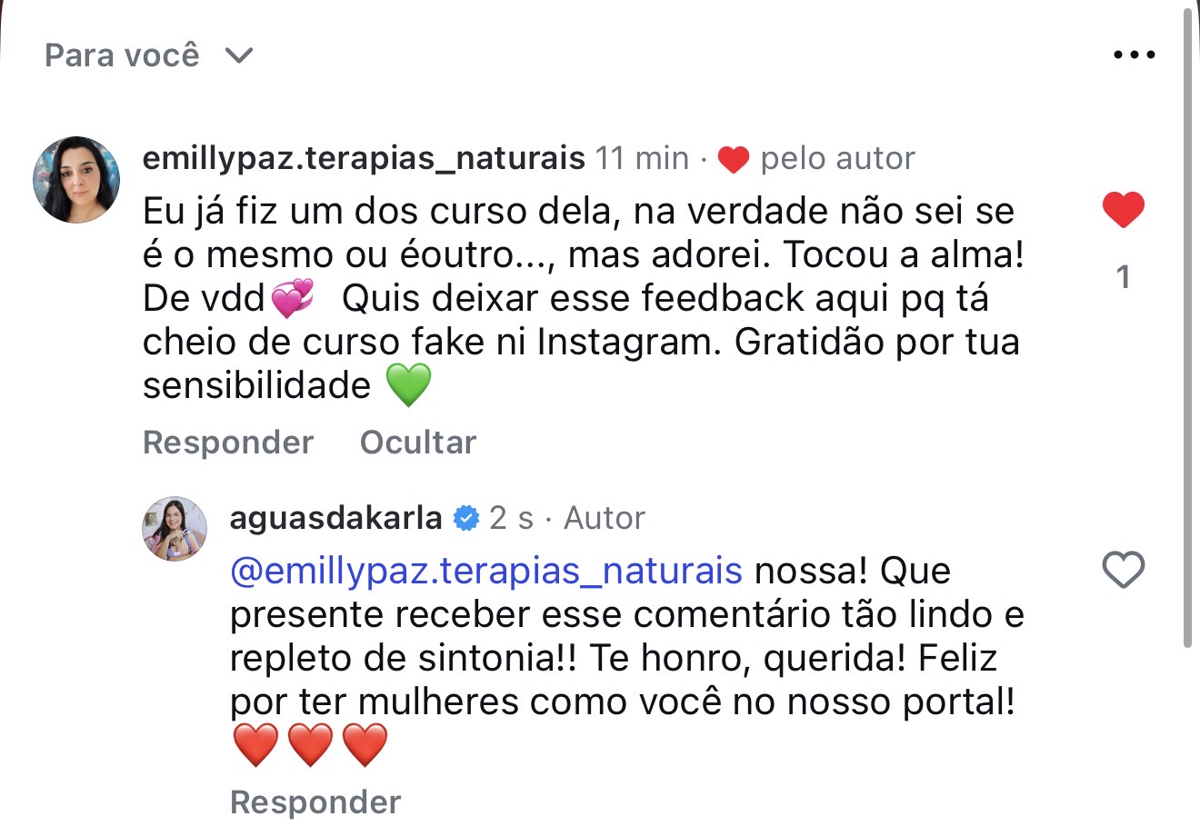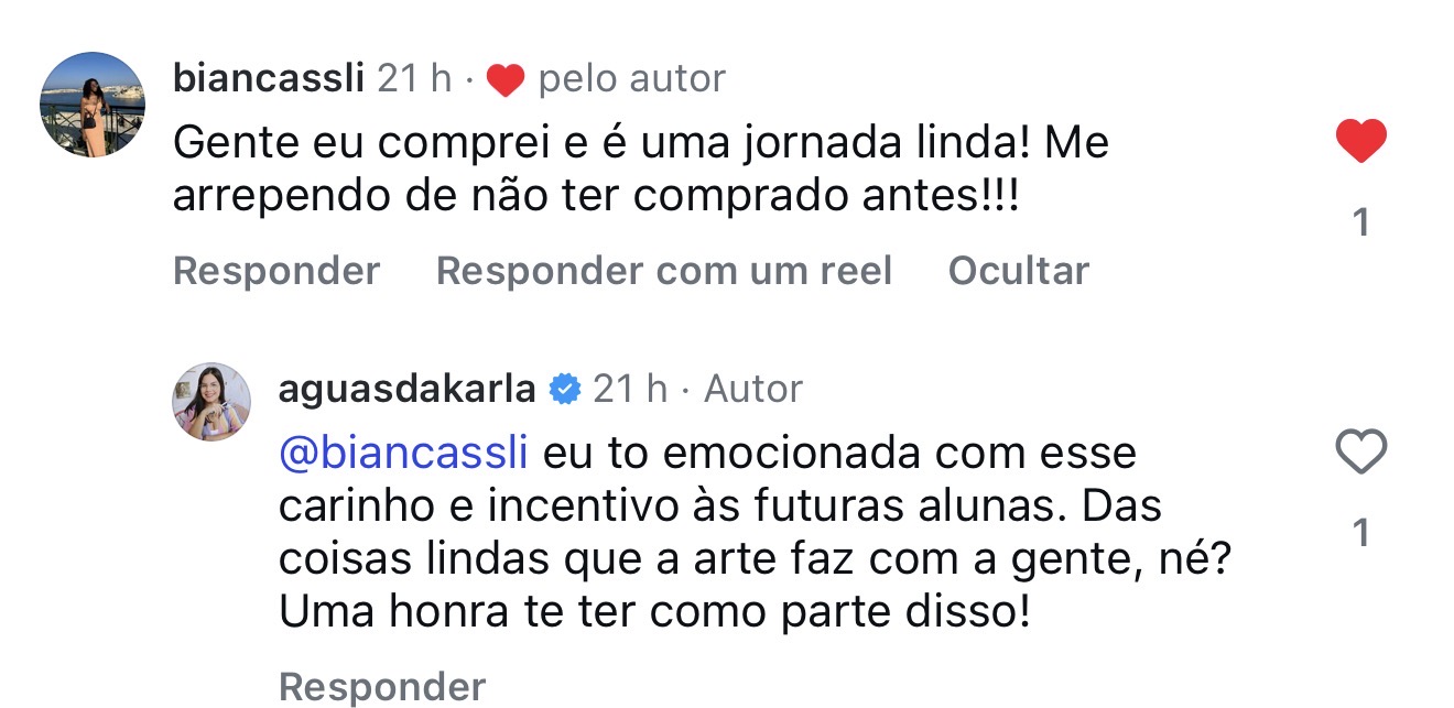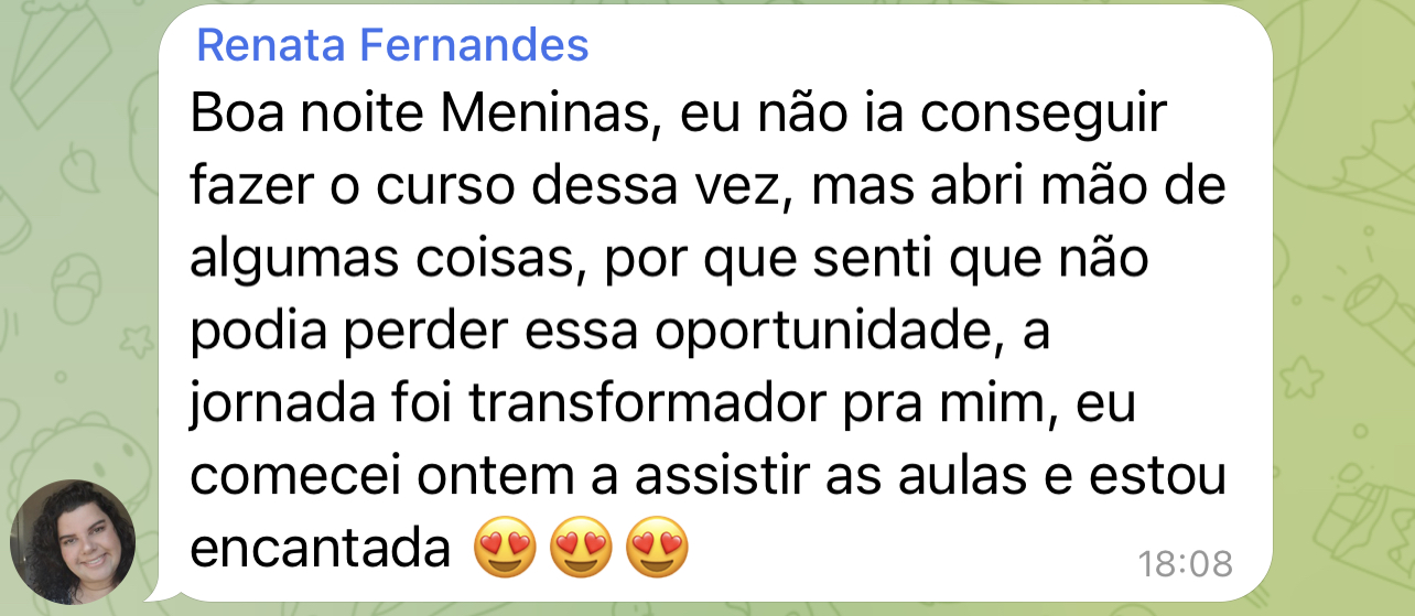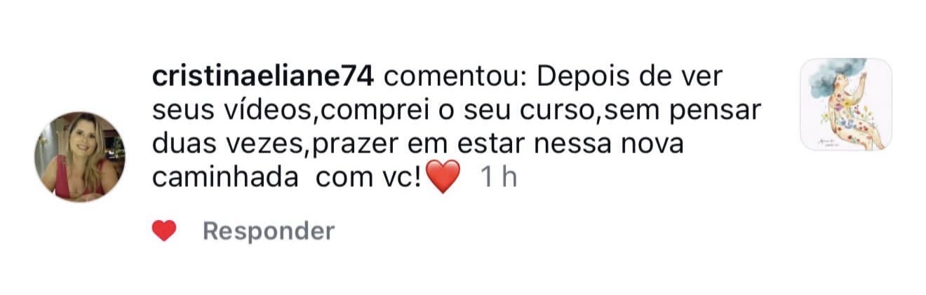 É lindo ver o desabrochar de tantas alunas que iniciaram o curso de forma tímida e sem acreditar em seus potenciais, tendo hoje resultados tão incríveis, em tantos níveis: em seus processos como um todo. É uma super satisfação pra mim!