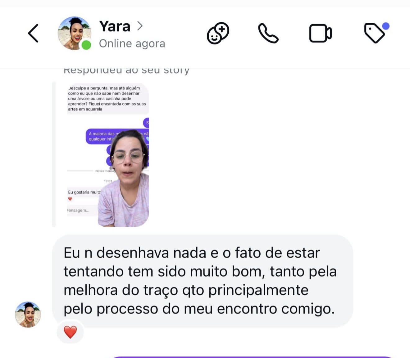 Acompanhamento nos 7 dias na semana através da plataforma e do grupo secreto do curso para tirar dúvidas, se inspirar e mostrar sua evolução. Ter esse espaço de troca com pessoas afins é super importante quando estamos iniciando algo novo.
