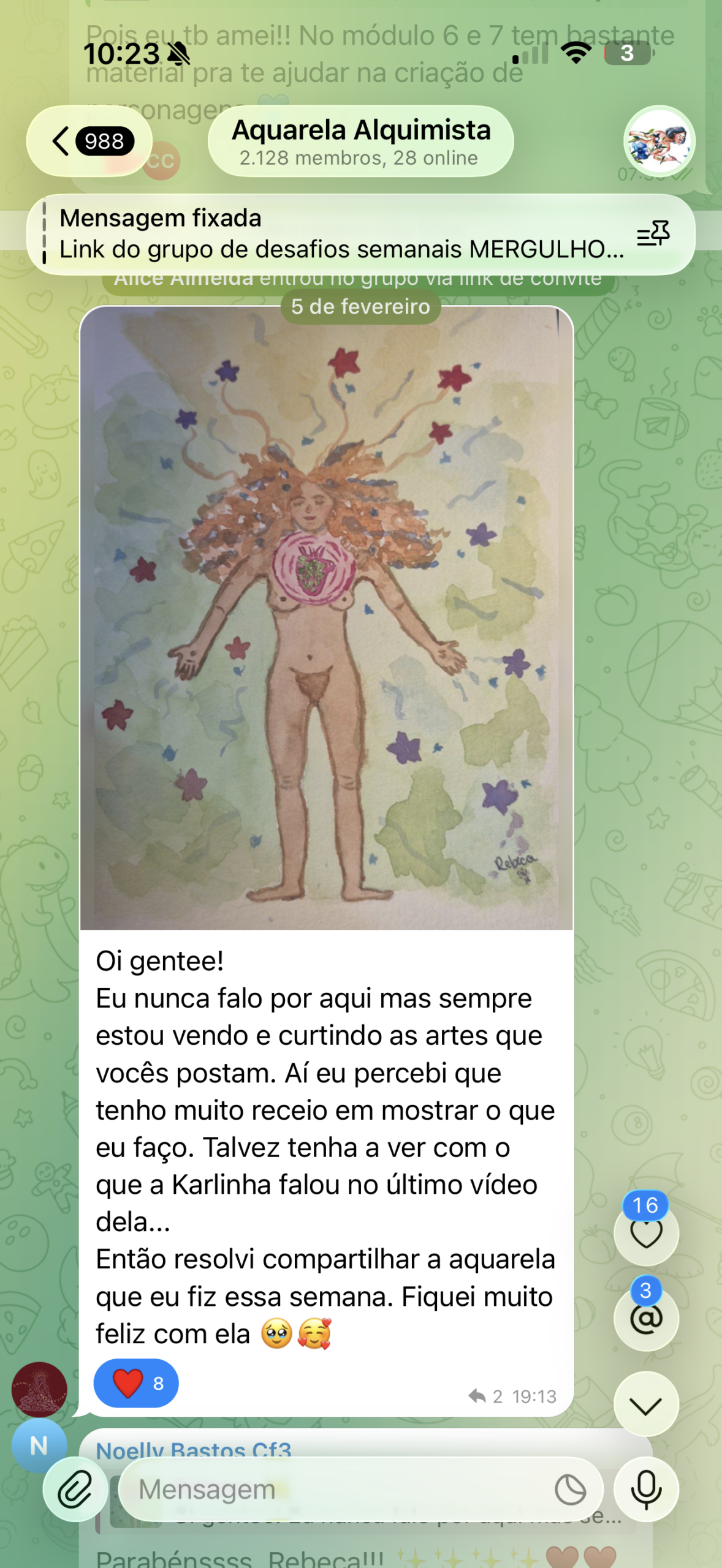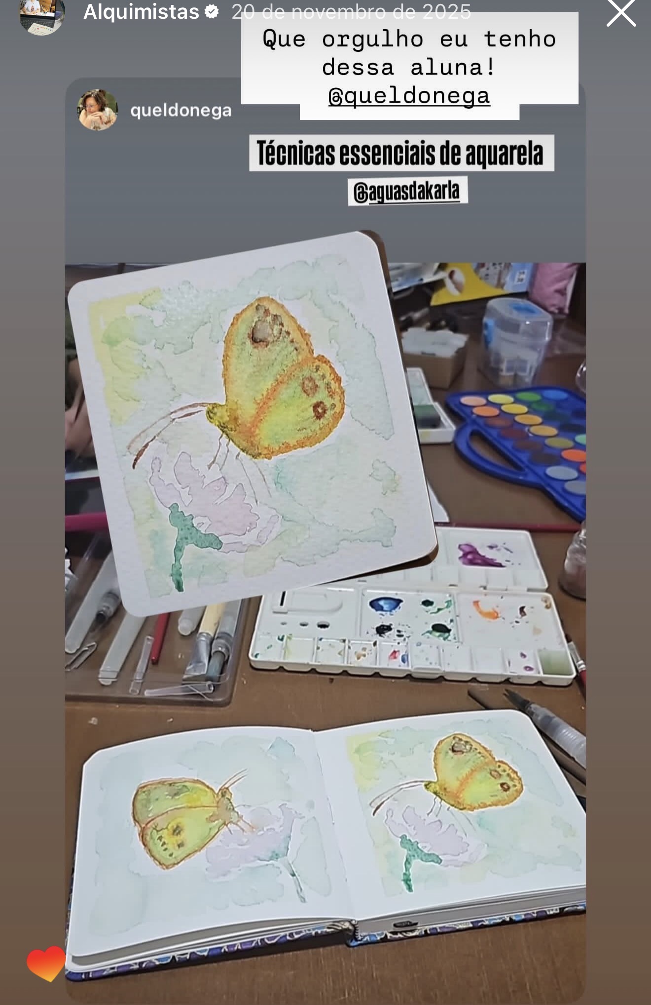 Hoje, sou mestra em Artes Visuais pela UFPE, e o que mais me encanta na arte é a própria elaboração de processos criativos que têm a capacidade de curar nossas feridas emocionais. Foi no desejo genuíno de compartilhar a aquarela como um portal de cura que trouxe o Aquarela Alquimista à vida.