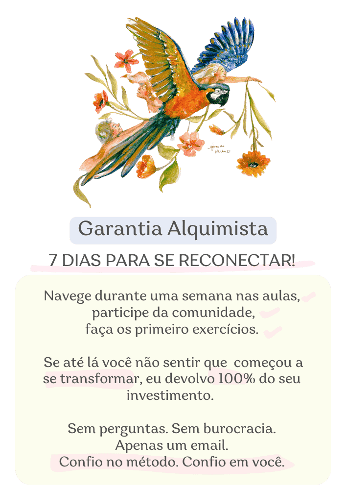 Diante de outros cursos, métodos e treinos, o Aquarela Alquimista reúne mais de 20 horas valiosas de imersão real, meditações, materiais de apoio, acompanhamento e ensino que atravessa a telinha e chega como um abraço. O valor é, na verdade, um presente!
