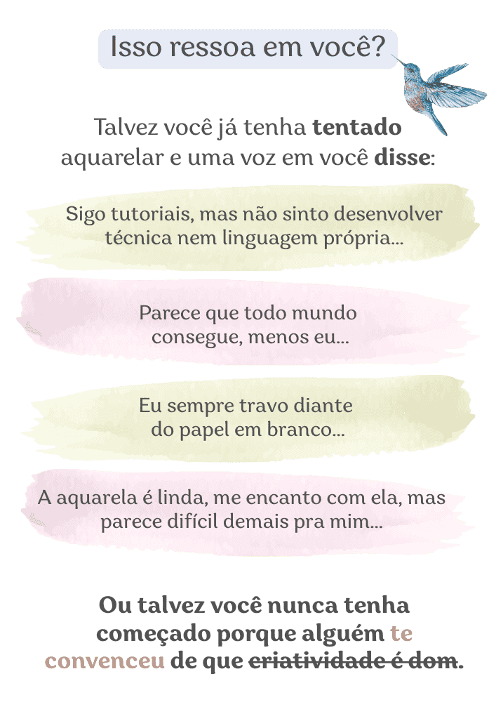 Acolhe quem nunca pintou e desenvolve a autenticidade e segurança criativa de quem já conhece e pinta com aquarela.